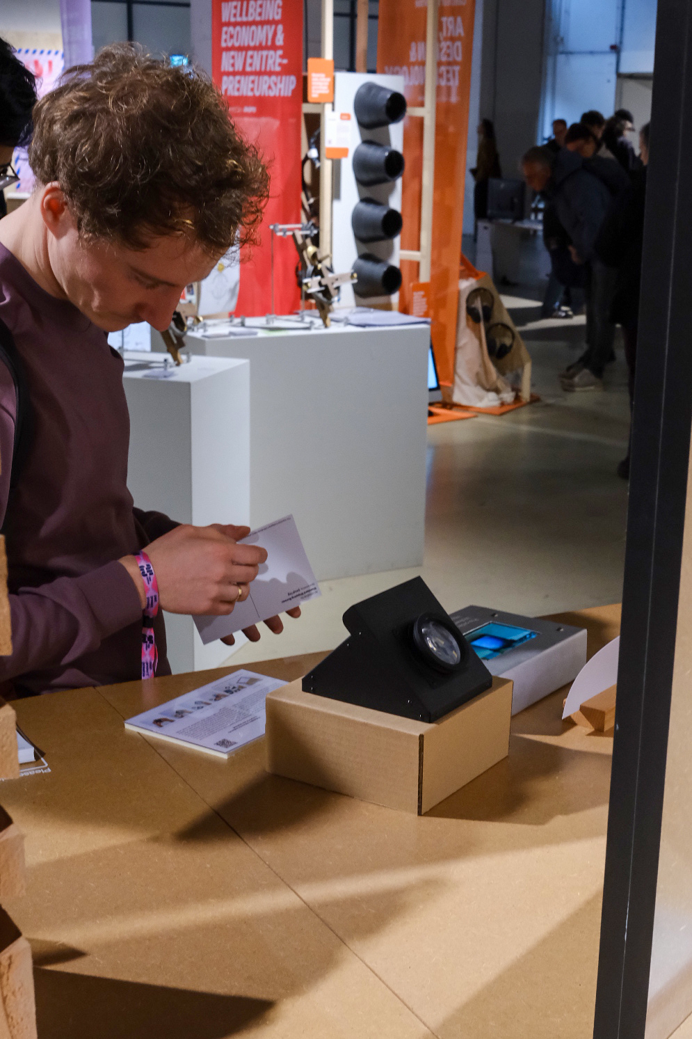 Made from anodized aluminium, a lens, a mirror, and a piece of glass, Wolkenkijker is fully analog (no batteries, just pure optics). The lens captures a fragment of the sky, which is reflected onto the glass, turning the passing clouds into a slow, ever-changing painting.